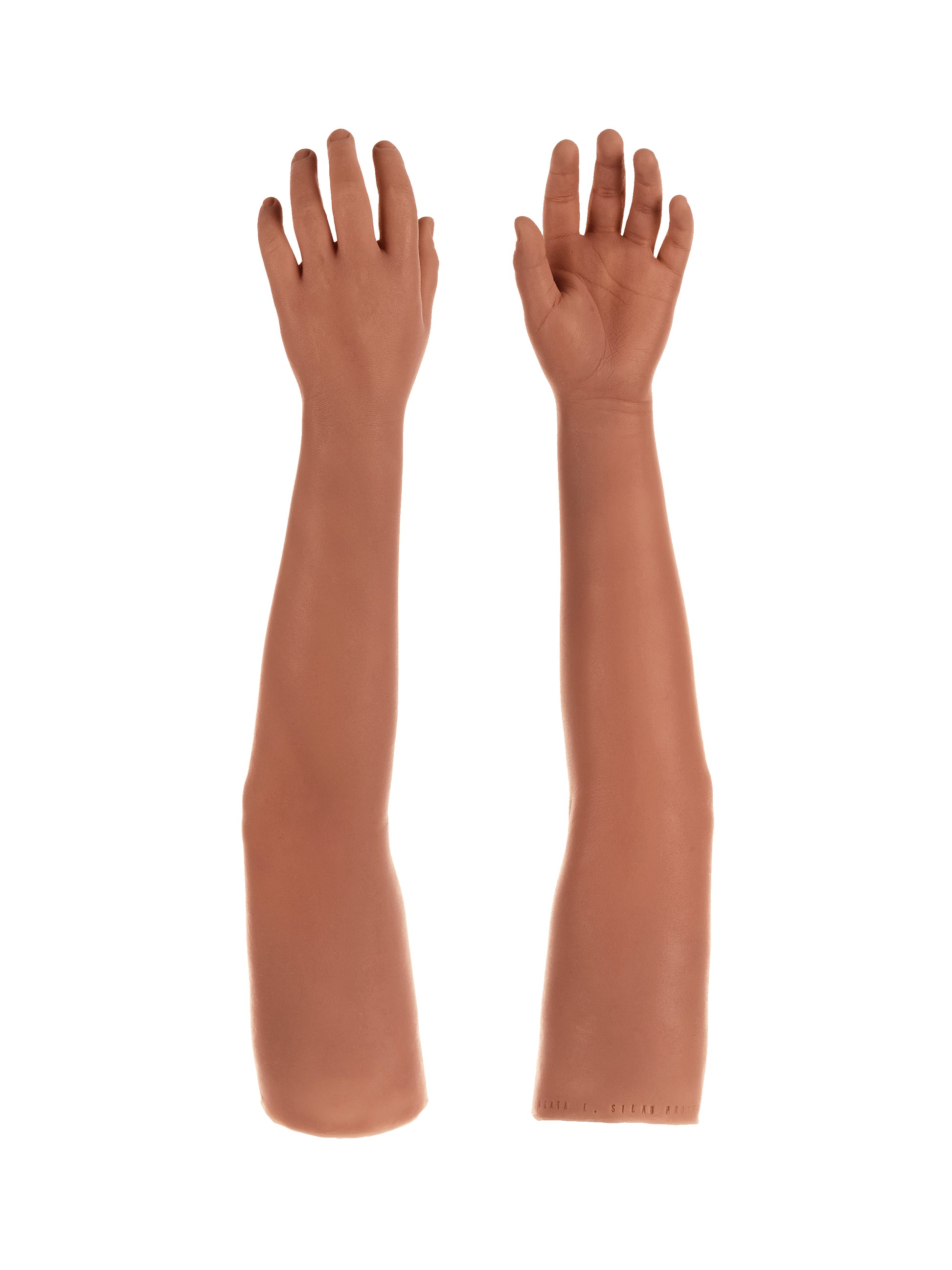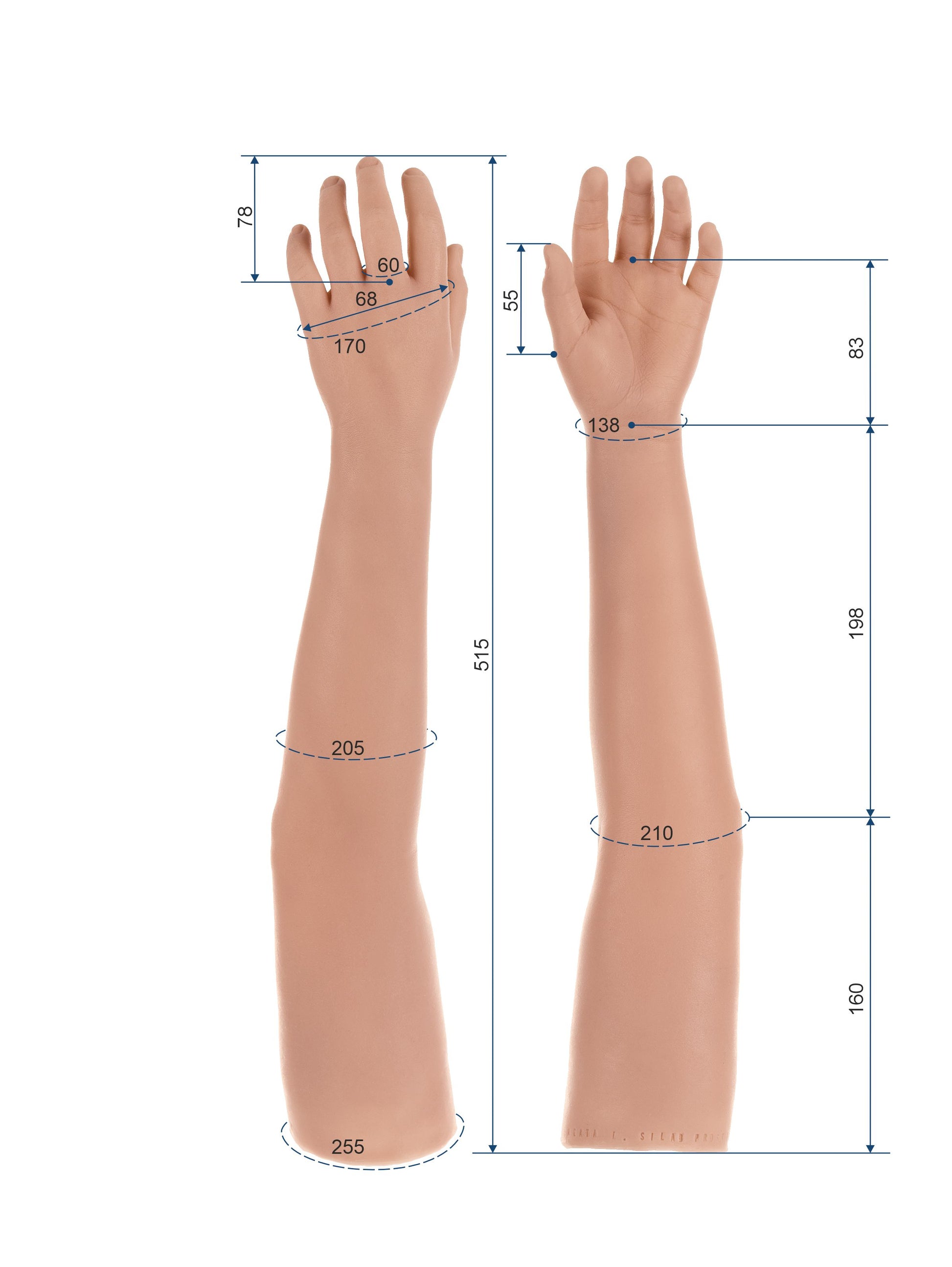 This product is a silicone cosmetic glove designed to cover and improve the external appearance of upper-limb prostheses for arm-level amputations. The glove is intended to be used as a aesthetic cover, compatible with internal fixation systems provided by certified prosthetists.