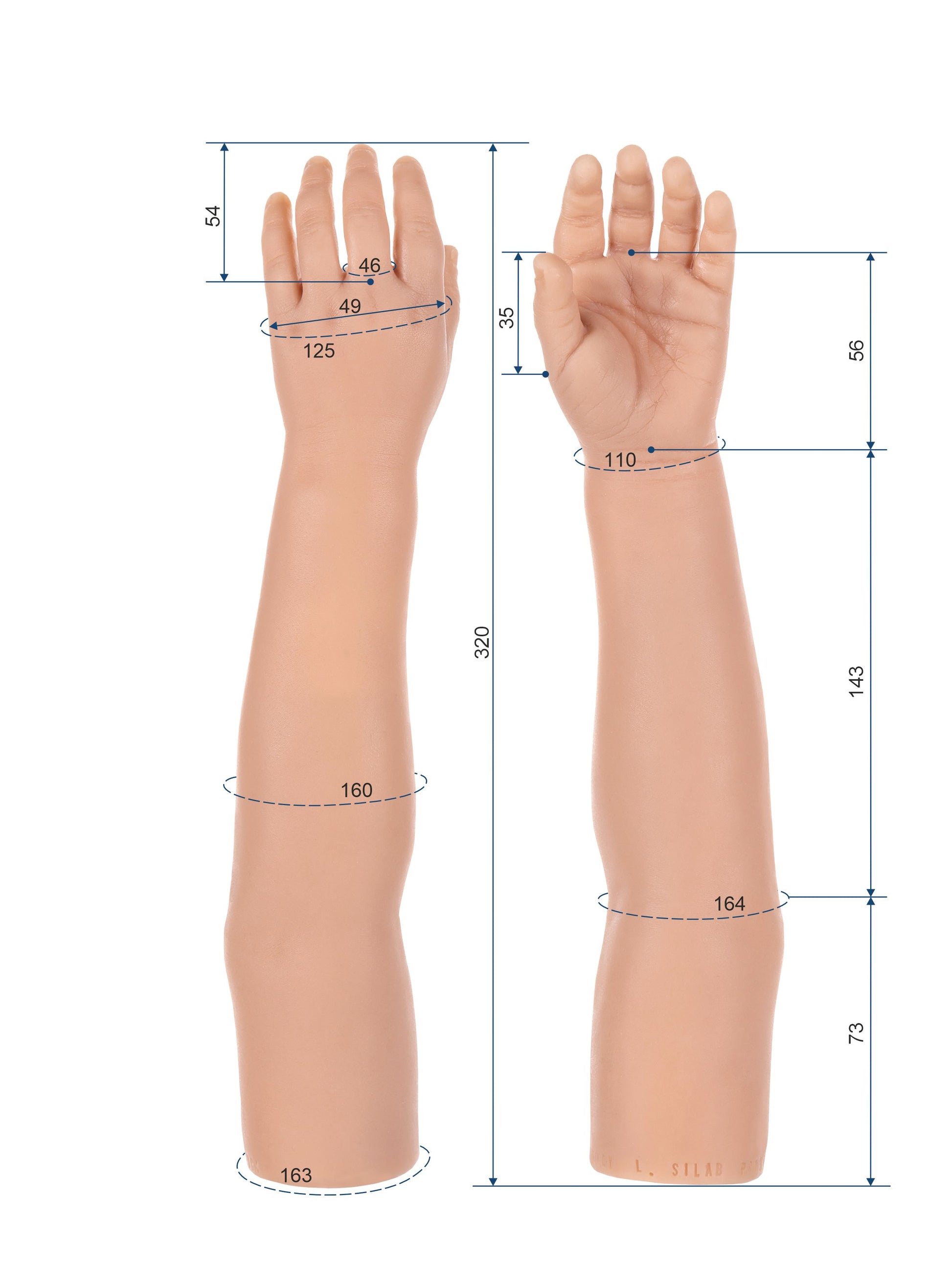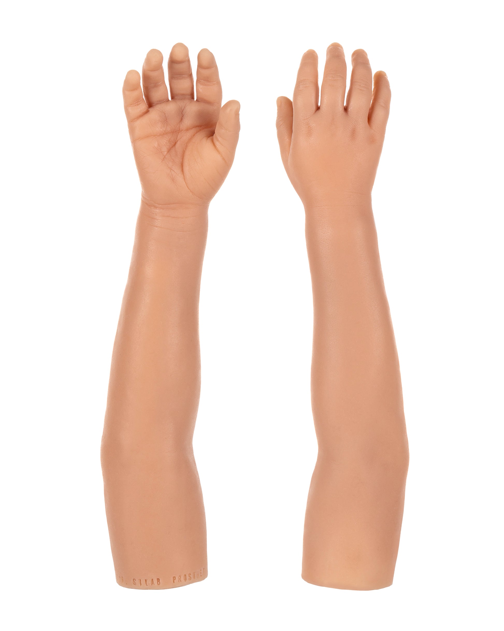 This product is a silicone cosmetic glove designed to cover and improve the external appearance of upper-limb prostheses for arm-level amputations. The glove is intended to be used as a aesthetic cover, compatible with internal fixation systems provided by certified prosthetists.