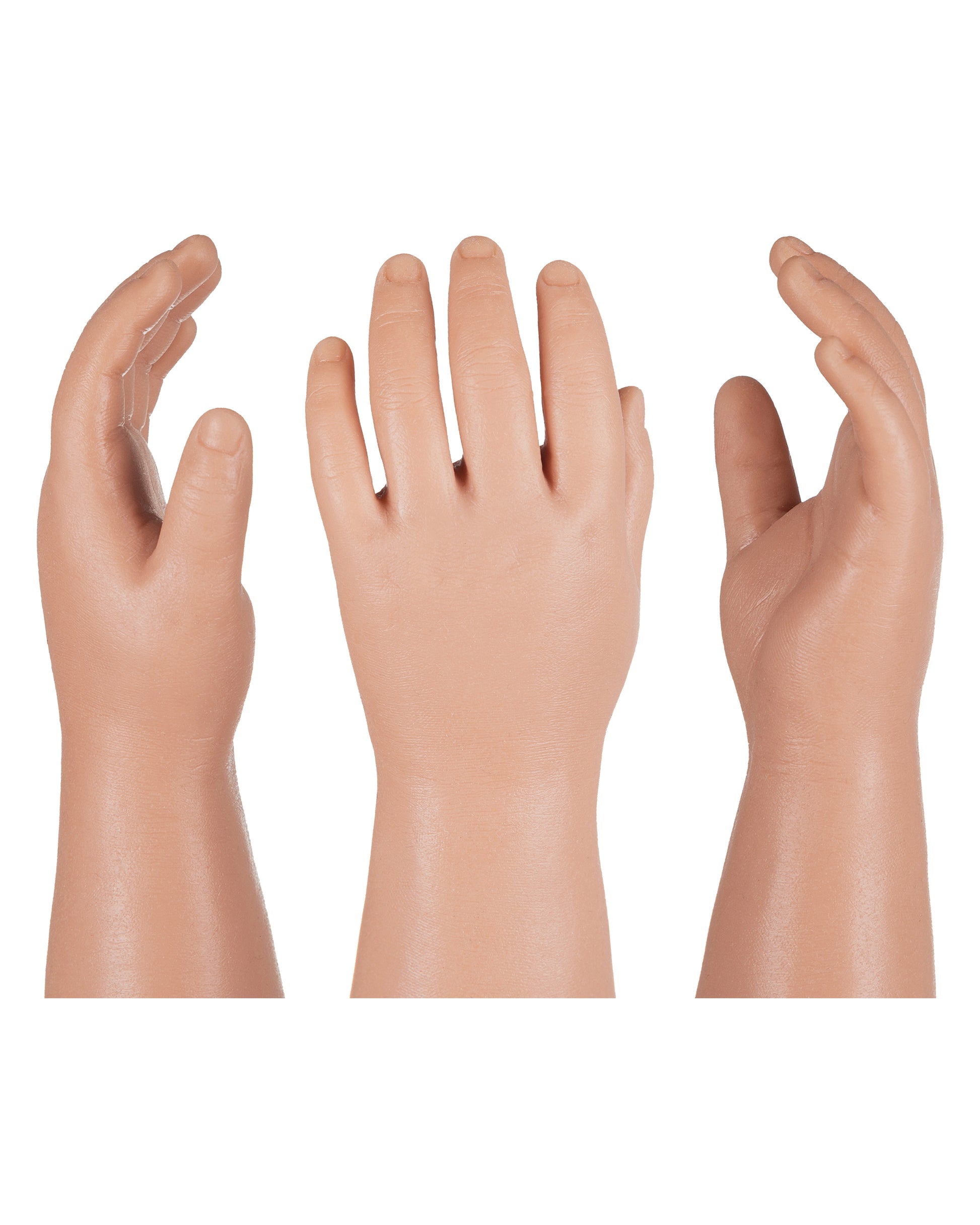 This product is a silicone cosmetic glove designed to cover and improve the external appearance of upper-limb prostheses for arm-level amputations. The glove is intended to be used as a aesthetic cover, compatible with internal fixation systems provided by certified prosthetists.