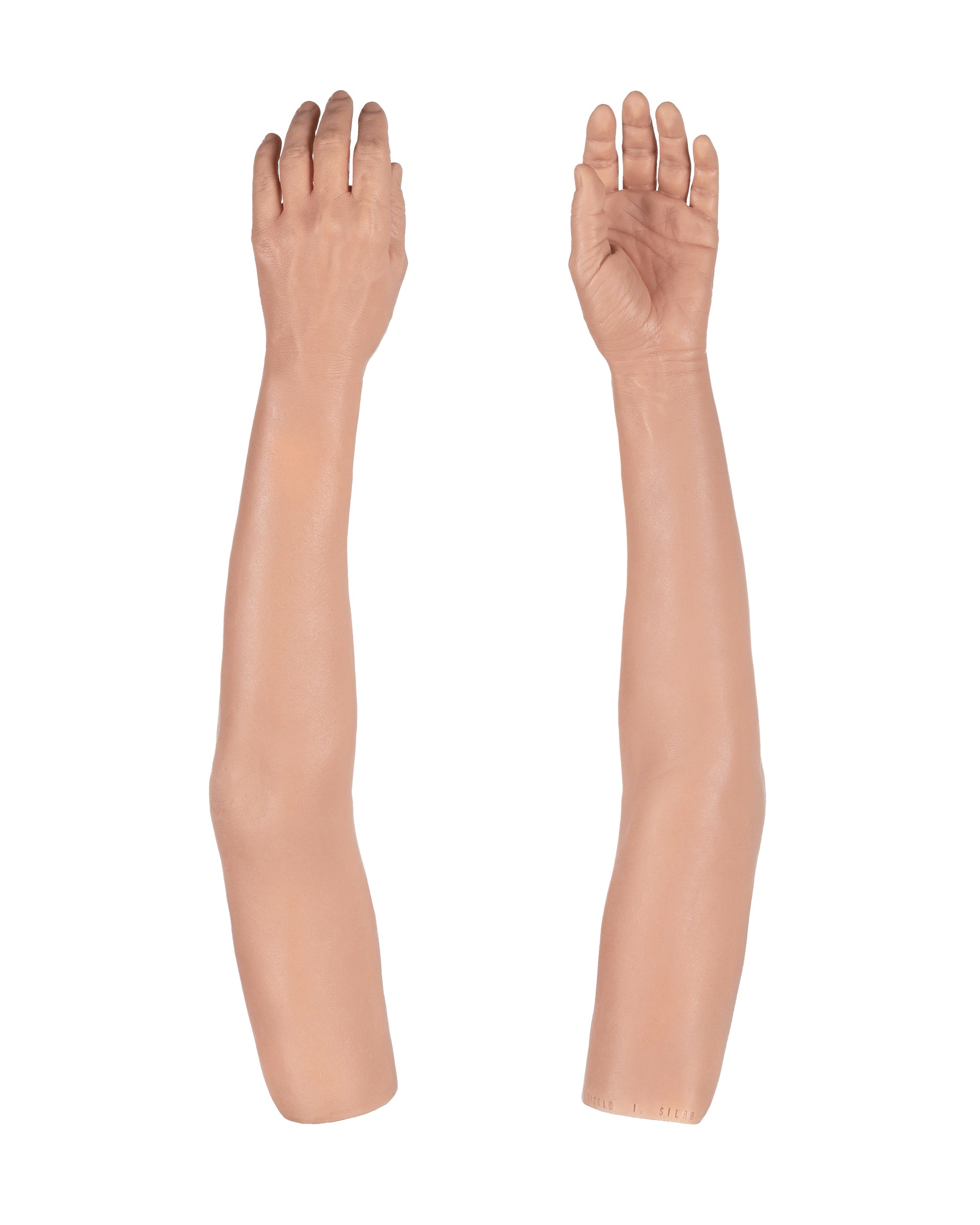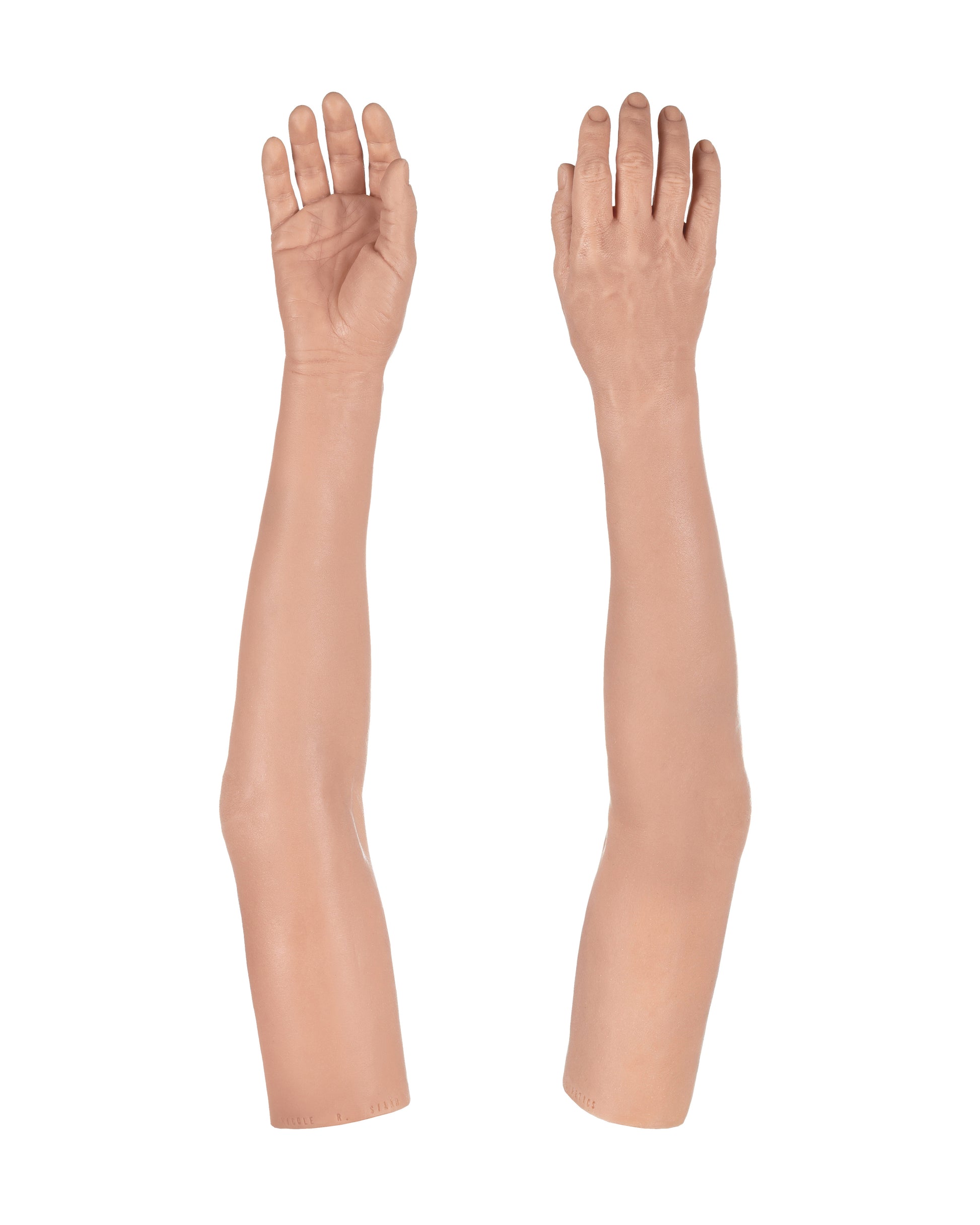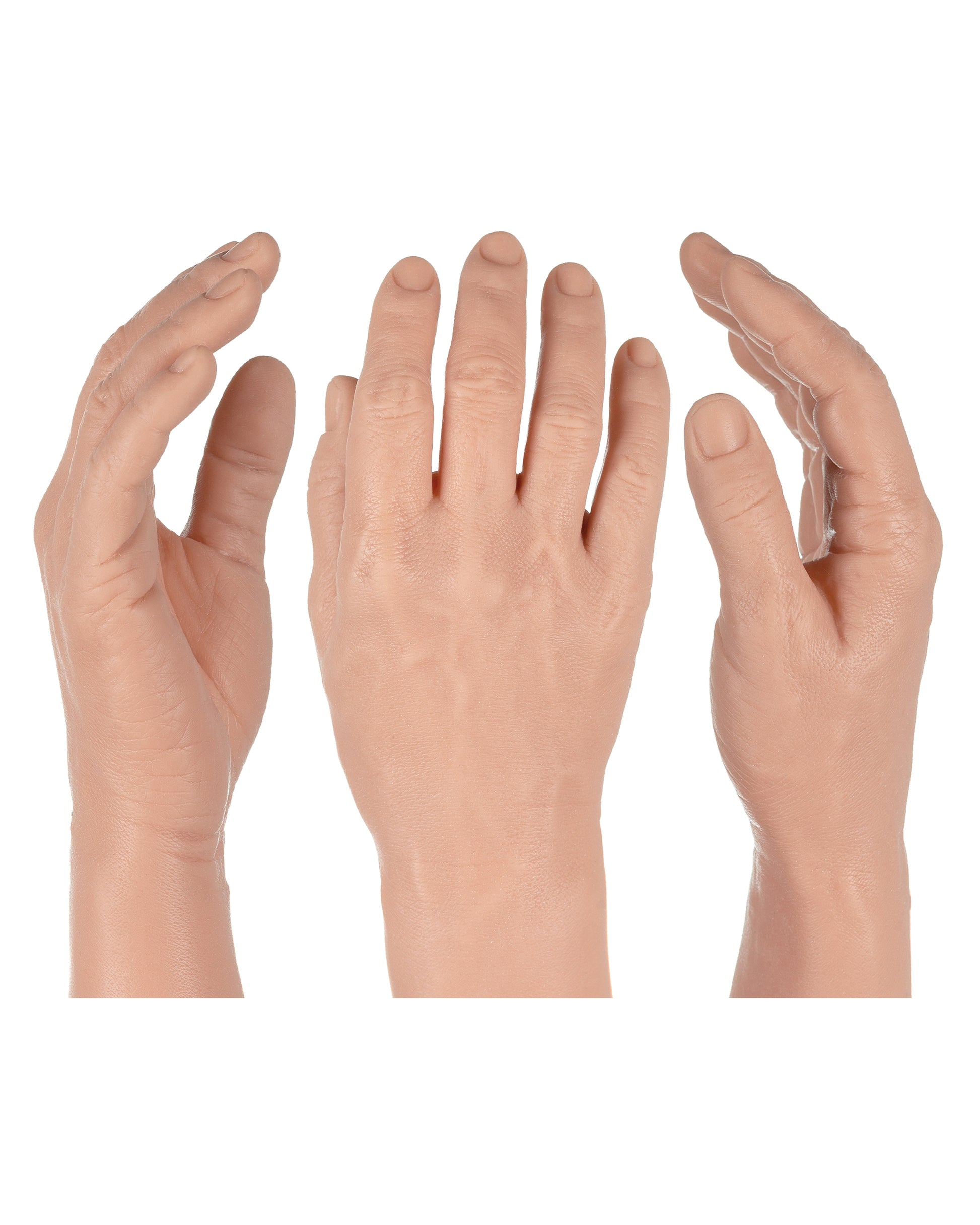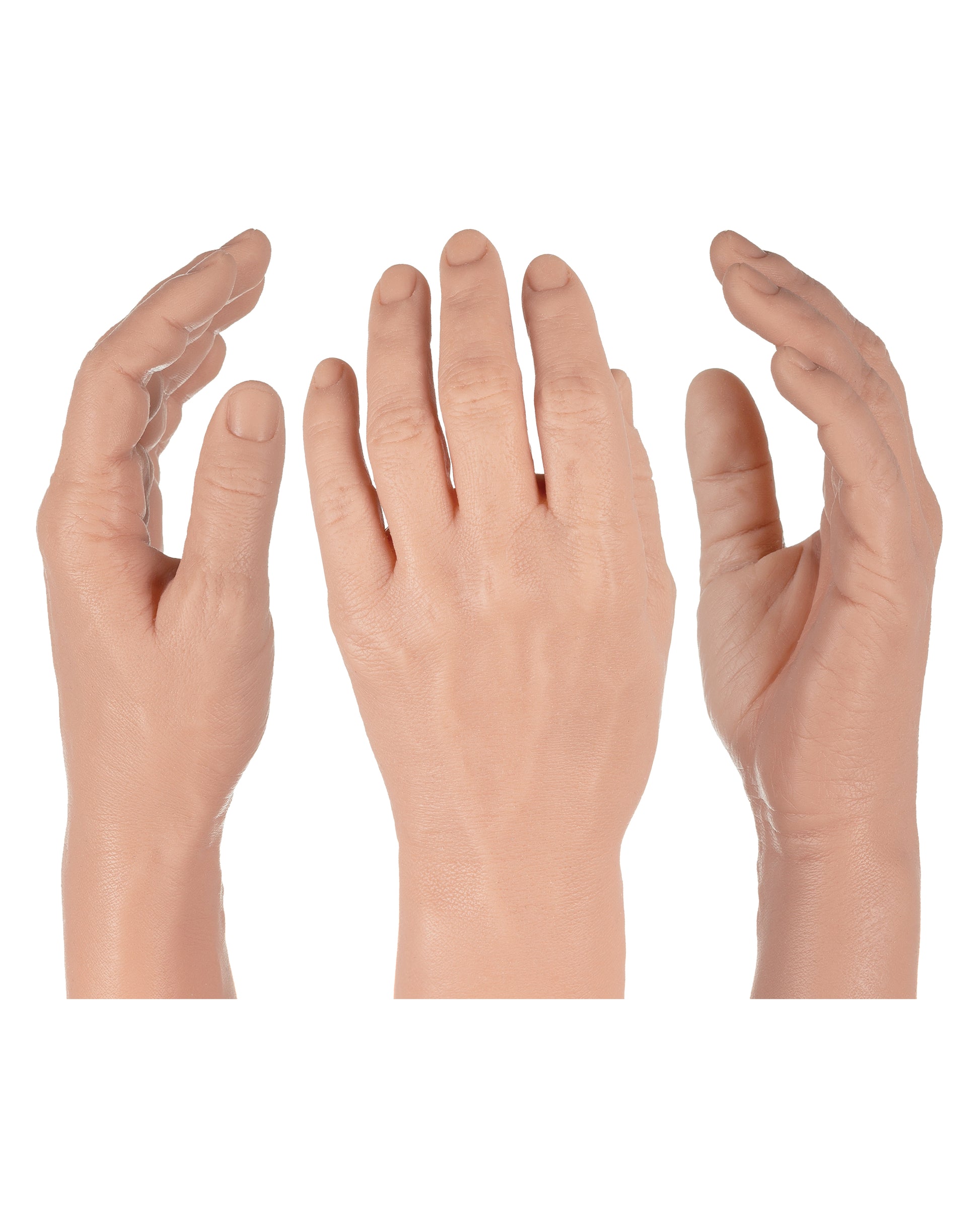This product is a silicone cosmetic glove designed to cover and improve the external appearance of upper-limb prostheses for arm-level amputations. The glove is intended to be used as a aesthetic cover, compatible with internal fixation systems provided by certified prosthetists.