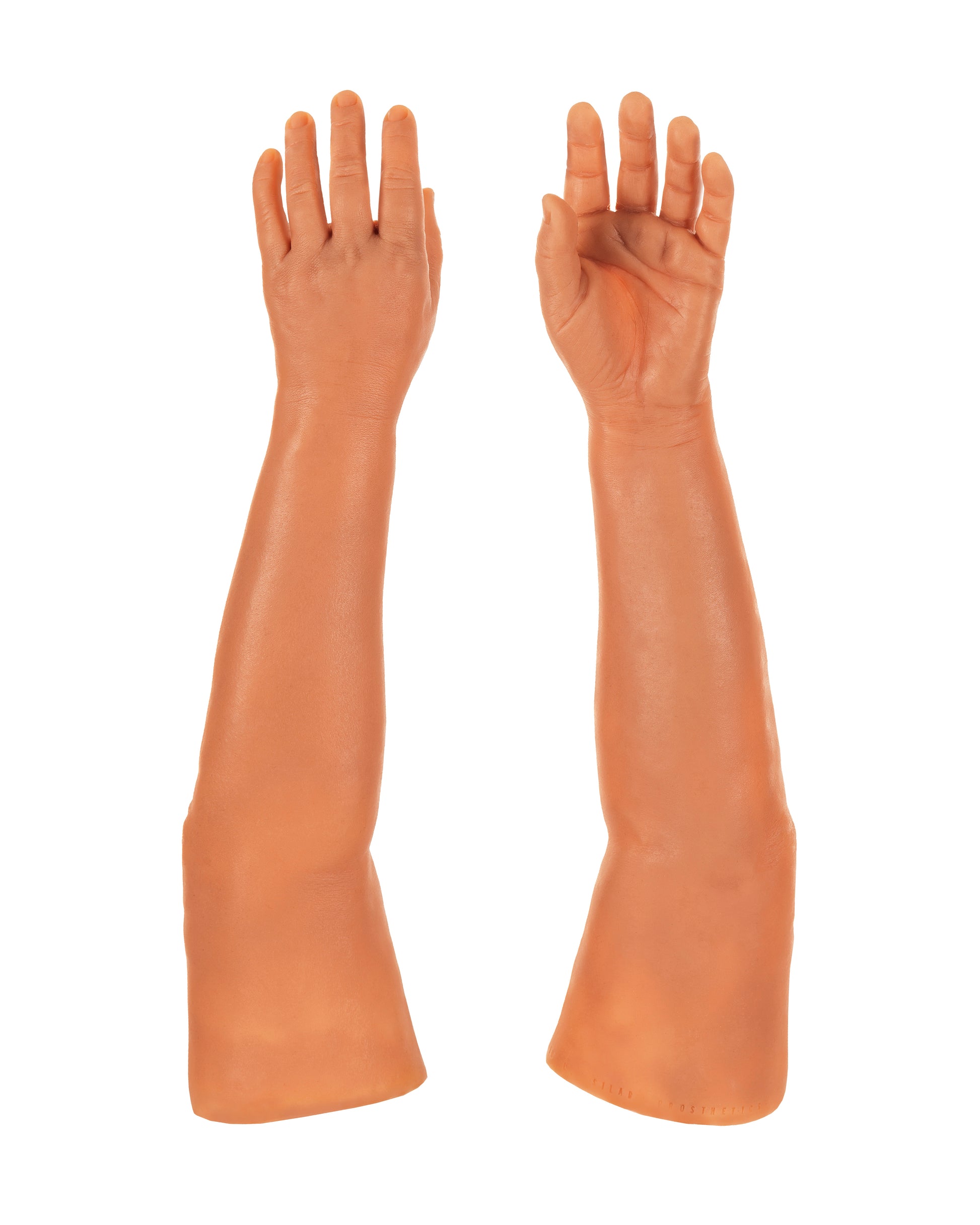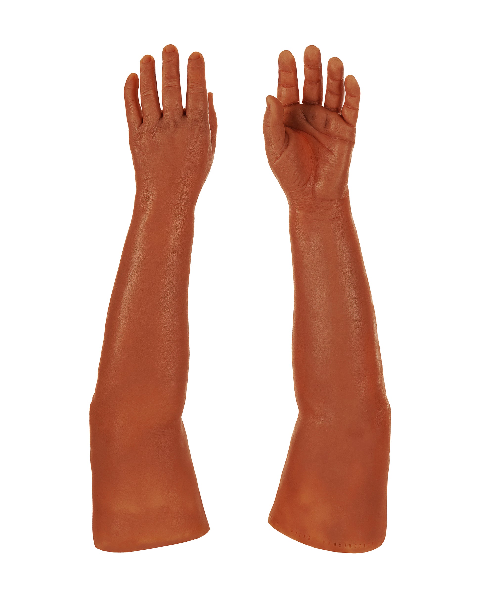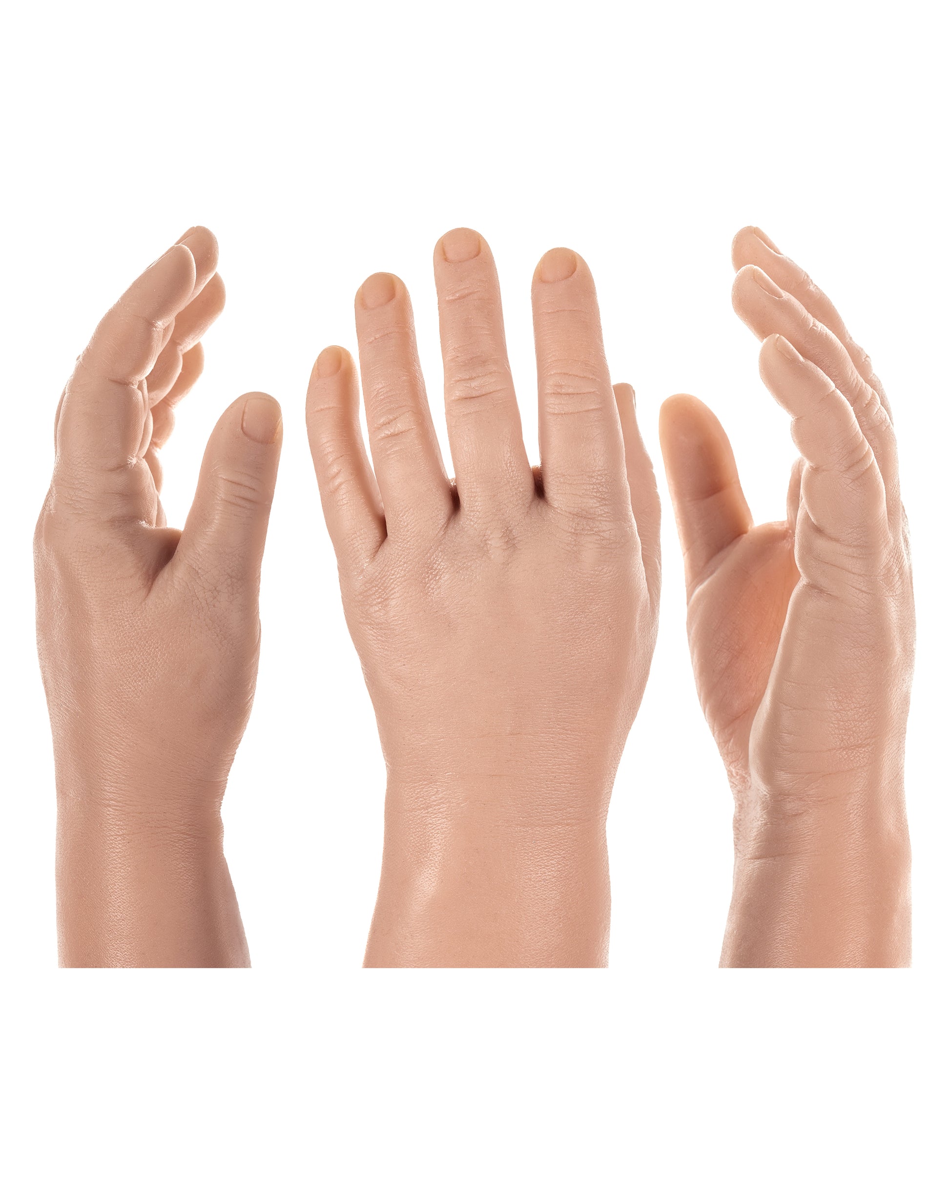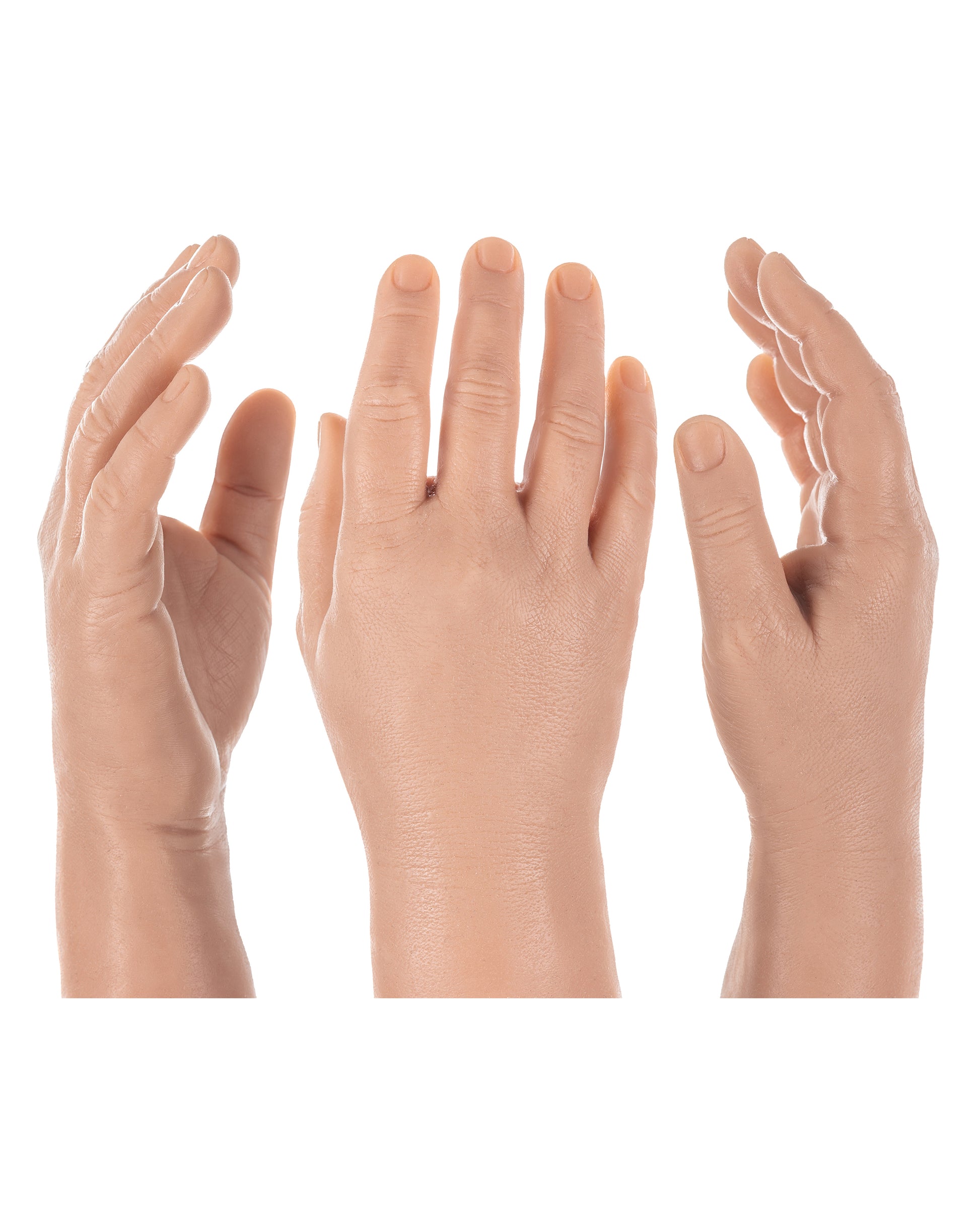 This product is a silicone cosmetic glove designed to cover and improve the external appearance of upper-limb prostheses for arm-level amputations. The glove is intended to be used as a aesthetic cover, compatible with internal fixation systems provided by certified prosthetists.