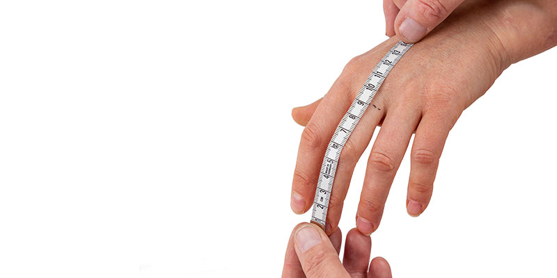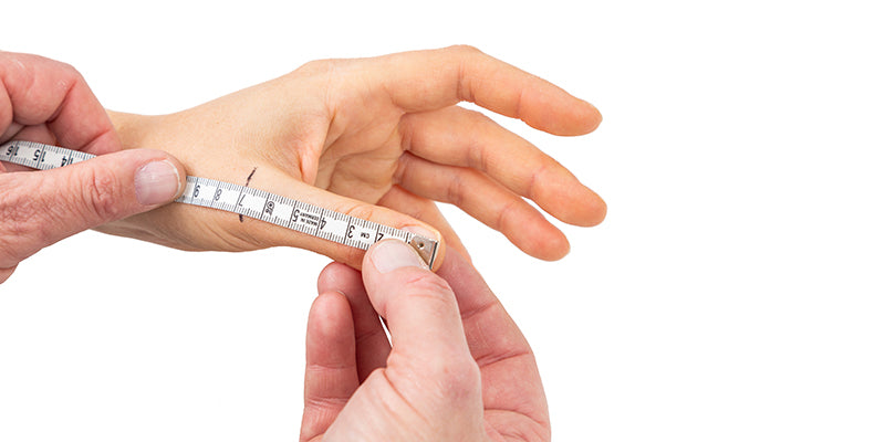 Measure from the thumb tip to the to knuckle (the metacarpophalangeal 1st joint MCP) Maintain the thumb straight, but relaxed.