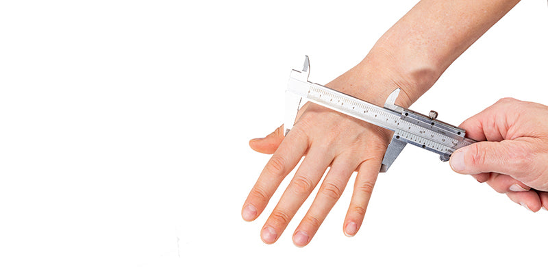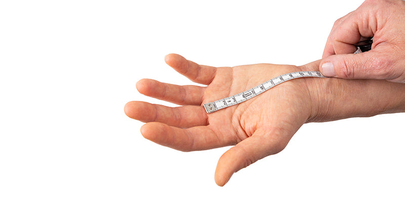 Use a caliper to measure the distance between two opposite sides of the palm where the pinkie and index finger both meet the palm.