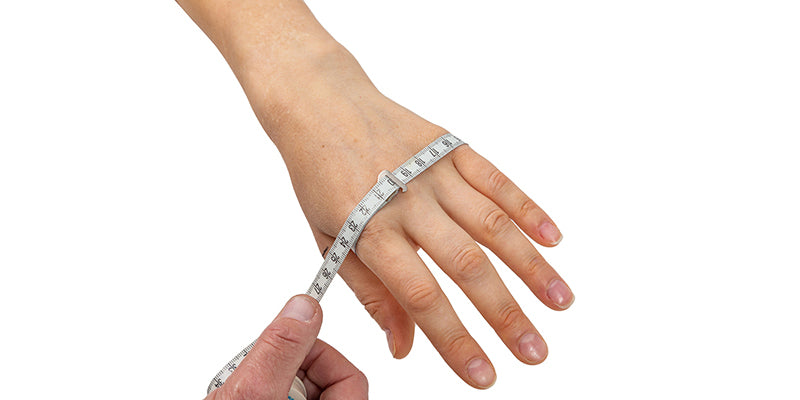 Measure from the tip of the middle finger to the second interdigital space IMPORTANT: keep the hand in relaxed position with fingers naturally curved and relaxed as indicated in the image.
