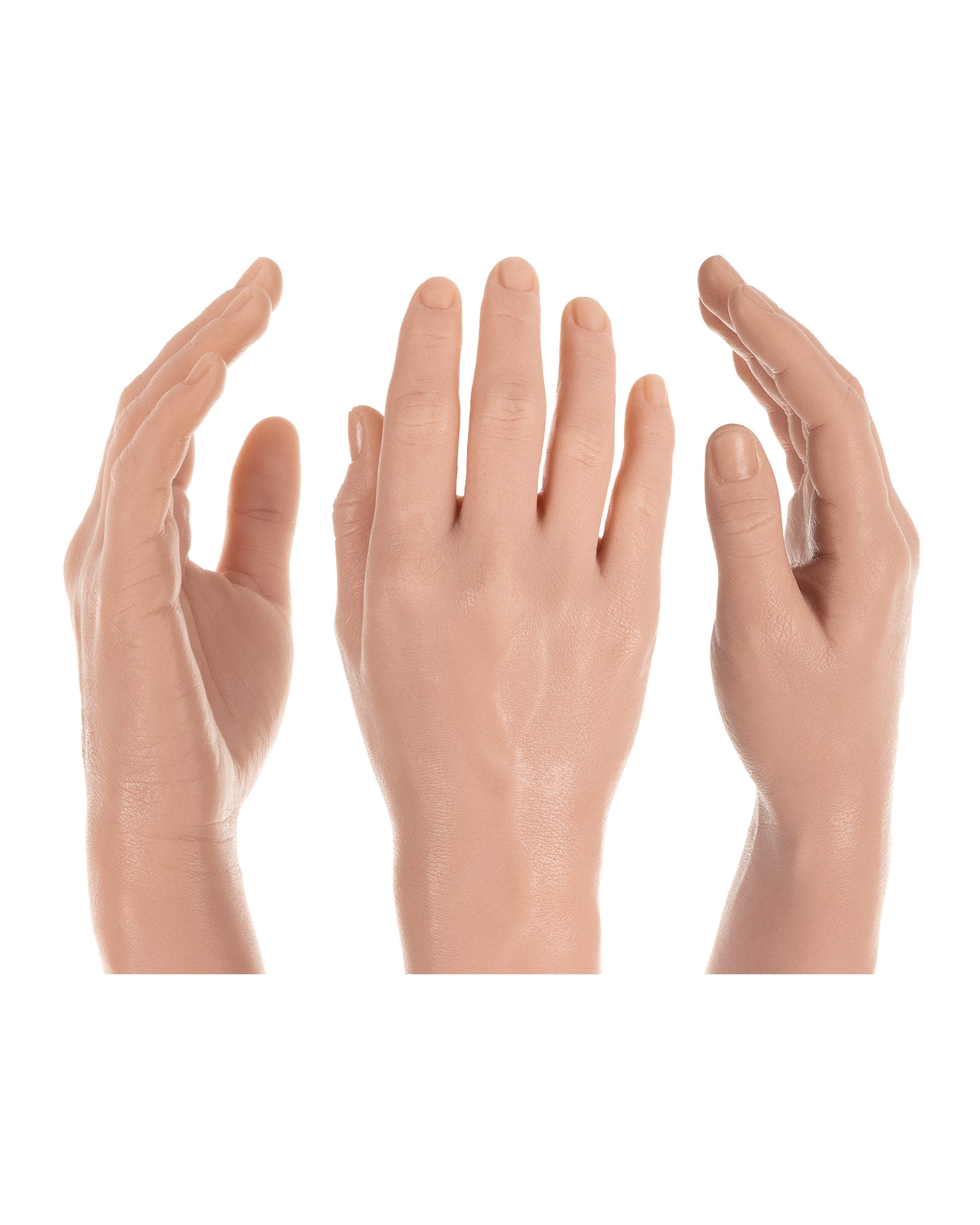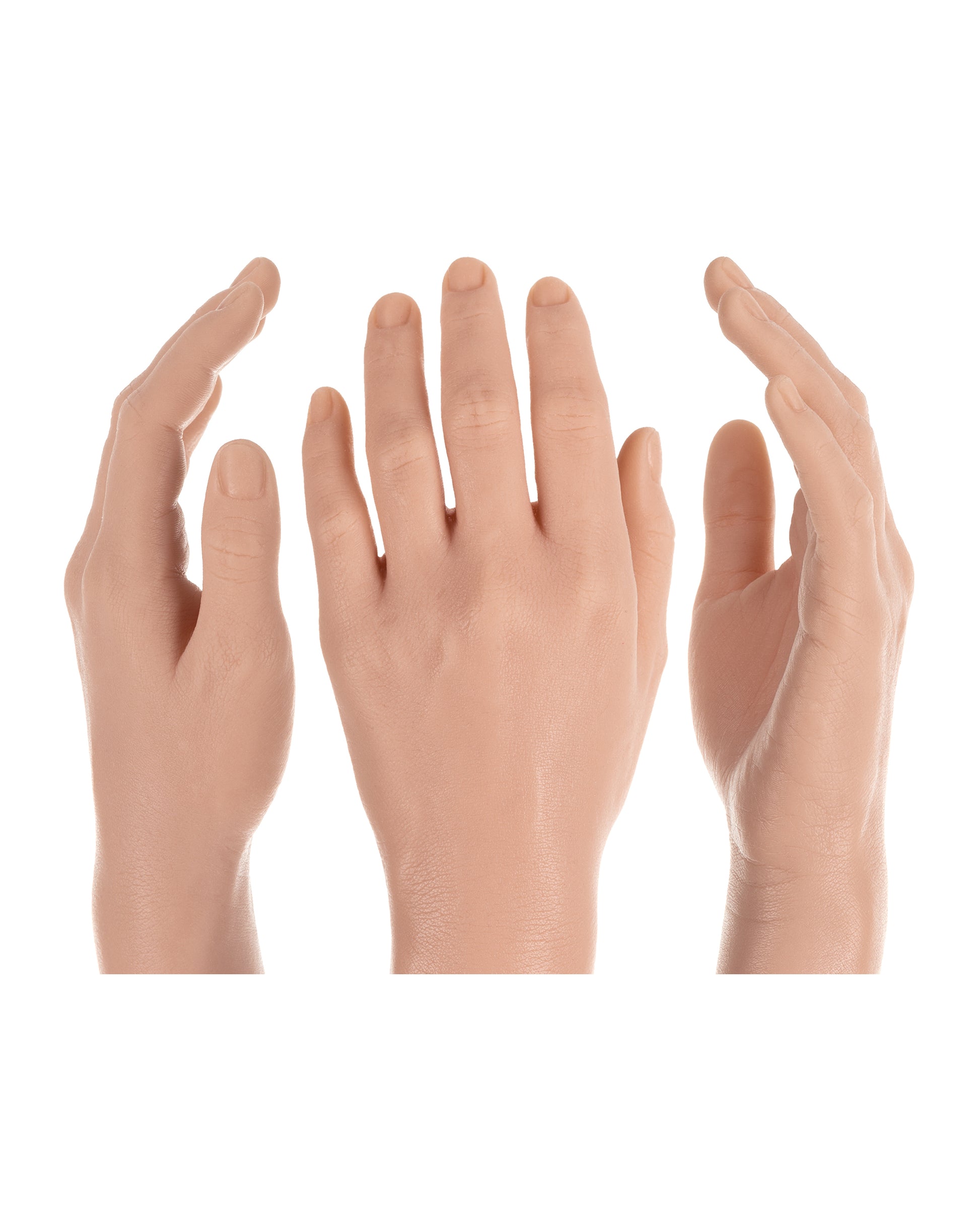 This product is a silicone cosmetic glove designed to cover and improve the external appearance of upper-limb prostheses for arm-level amputations. The glove is intended to be used as a aesthetic cover, compatible with internal fixation systems provided by certified prosthetists.