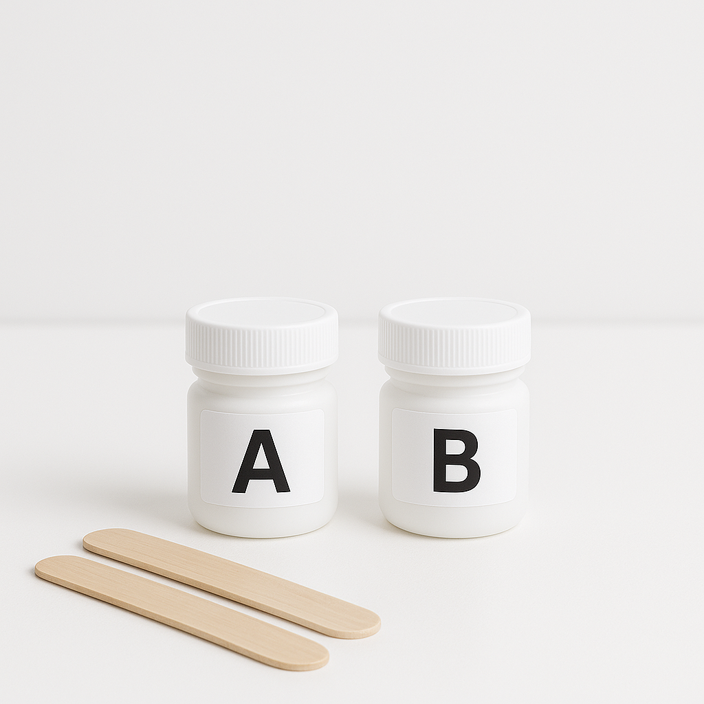 This kit includes two medical-grade components — Part A (Base) and Part B (Catalyst) — which you can mix on-site. Once prepared, the silicone can be poured directly into the glove and shaped together with your patient for an optimal, customized fit.